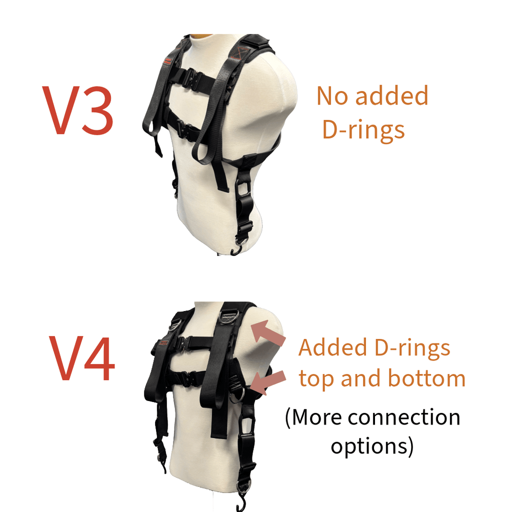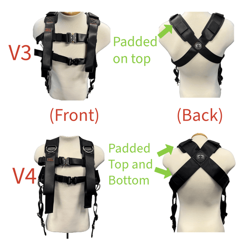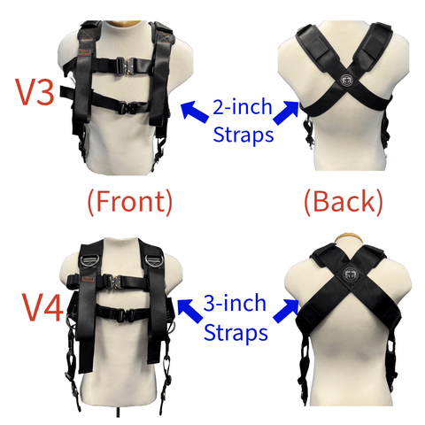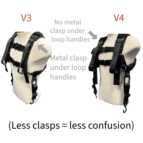 •To minimize confusion, we got rid of the buckles that were located under the shoulder straps of the V3. Now, the only buckles are located across the chest.