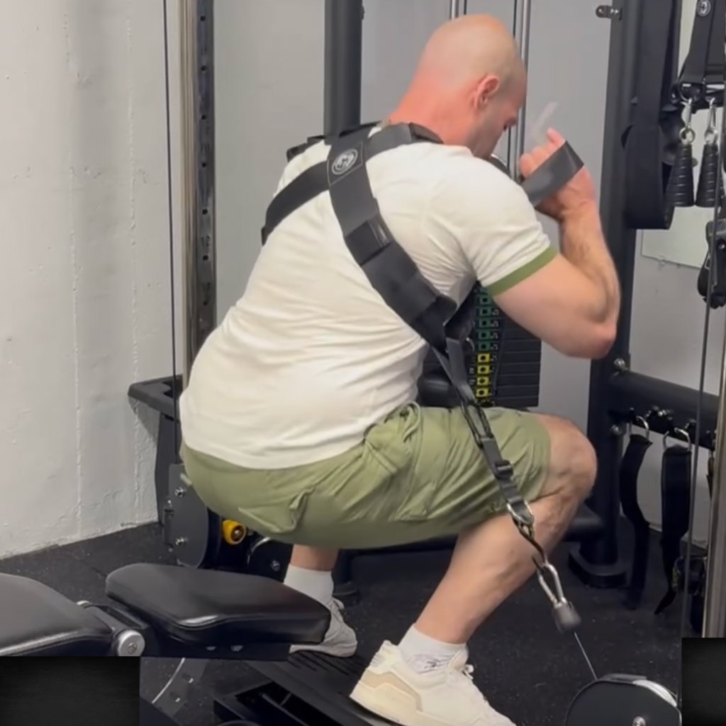 *Barbell or Hex bar- Please be advised that using The Squat Harness V4 with free weight puts more direct force on the straps compared to cable or resistance band use, and therefore it is advisable to test each lift carefully once you exceed 500lbs. While we continue to test each batch and maintain that The Squat Harness V4 can handle free weight loads up to 950lbs, free weights are less stable than machine or band resistance and come with increased risks of injury if not used with care*.